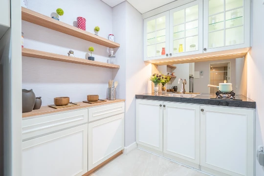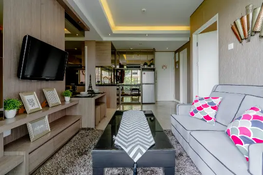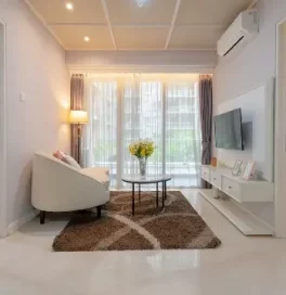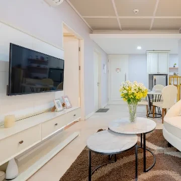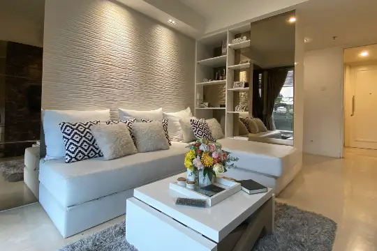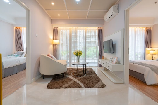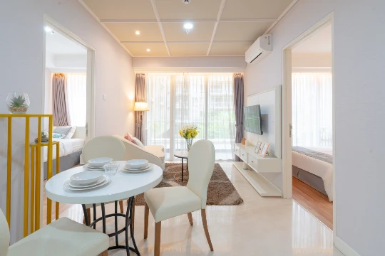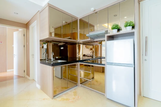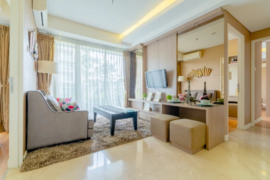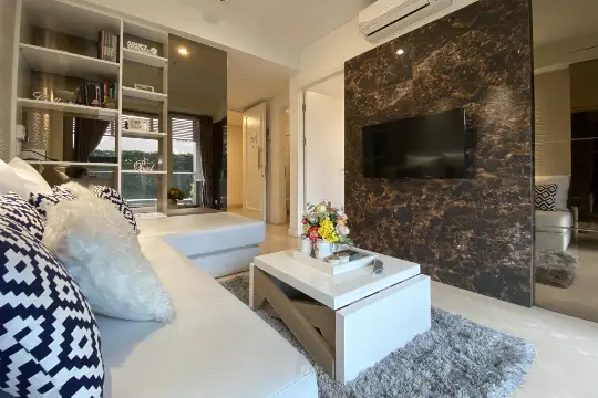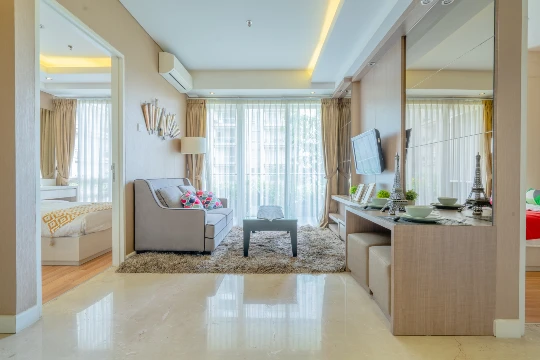 Unit apartemen minimalis di Bandung dengan material dan desain terbaik, menggunakan marmer slab ukuran 1-1,5 m impor Turki.