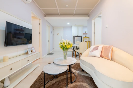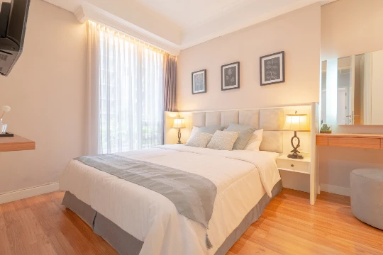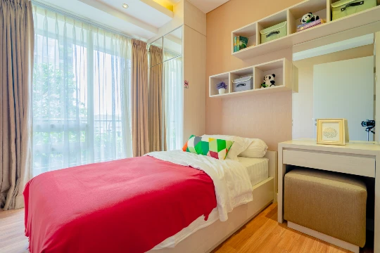 Pencahayaan alami sangat baik dengan jendela lebar dari lantai ke ceiling dan layout unit yang melebar, memasok sinar matahari alami secara berlimpah ke dalam ruangan. Tata letak ruang pun bisa diatur secara leluasa.