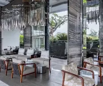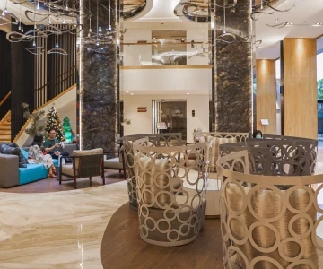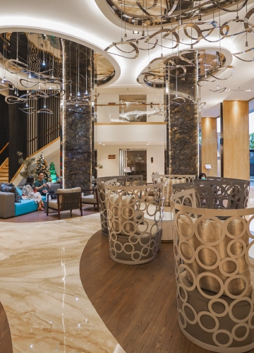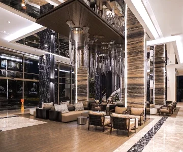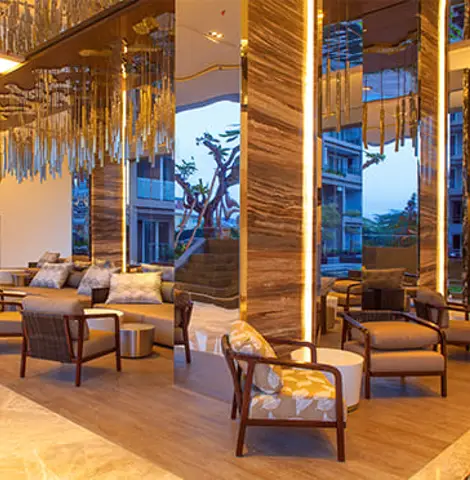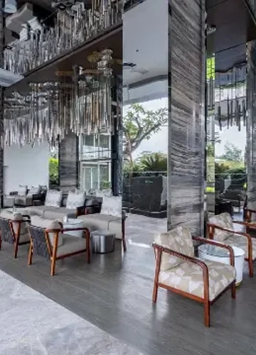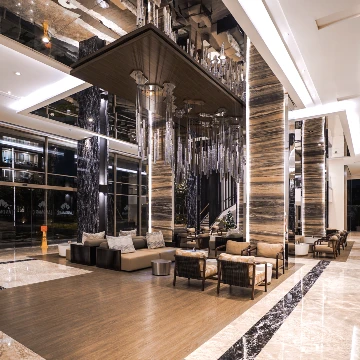 Elevated Elegance. Ruangan lobi yang mewah dengan marmer dan onix siap menyambut Anda di Landmark Residence Bandung.